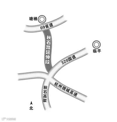 秋石路延伸工程是省重点工程,项目起于09省道(塘栖镇),终至320国道至104国道连接线(崇贤街道),全长约7.2公里,其中塘栖镇境内6.8公里,崇贤街道范围内400米,时速80公里,双向六车道。预计12月底完工并通车。