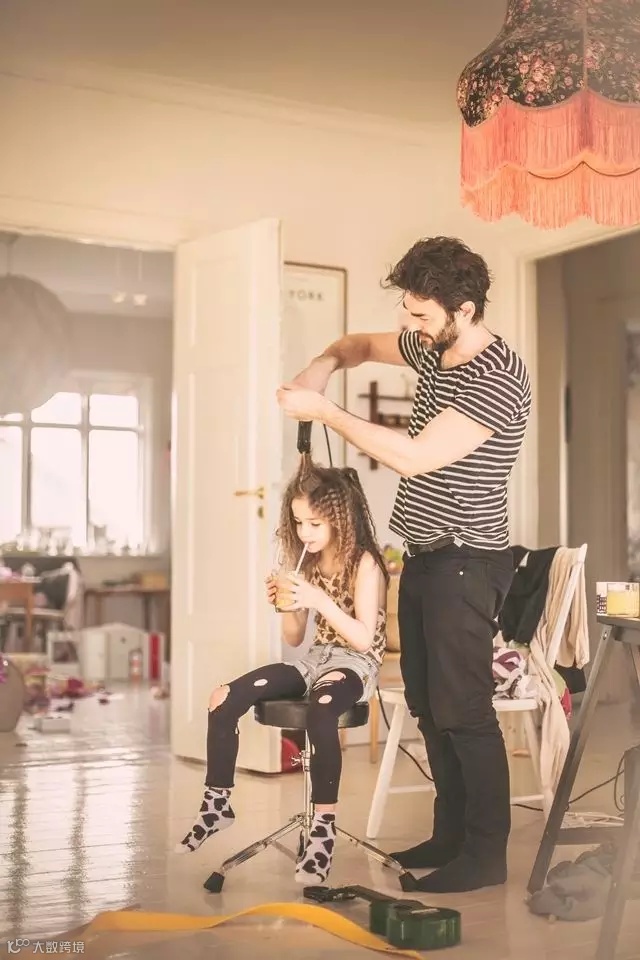给她扎个好玩的发型装装酷,趁着爹地没有老