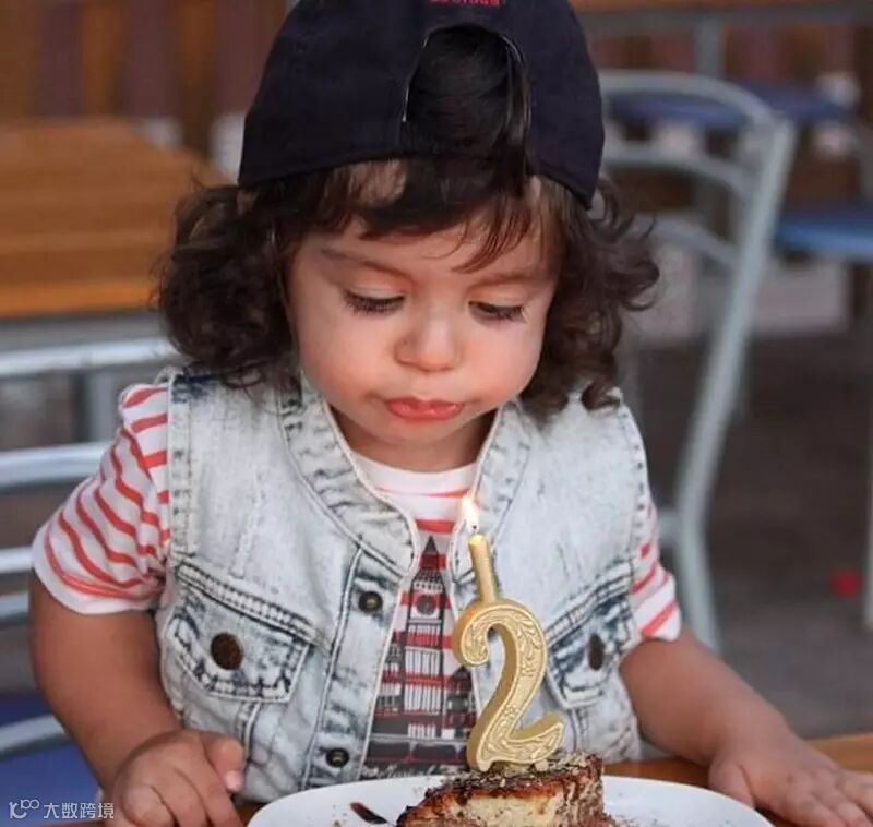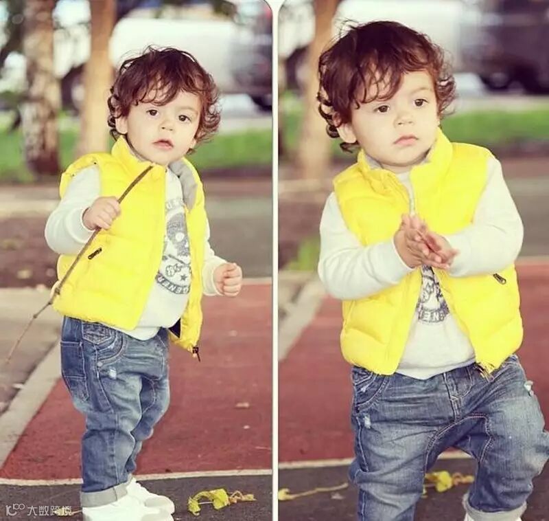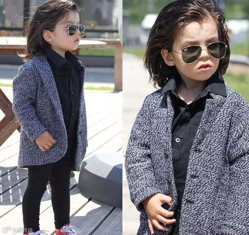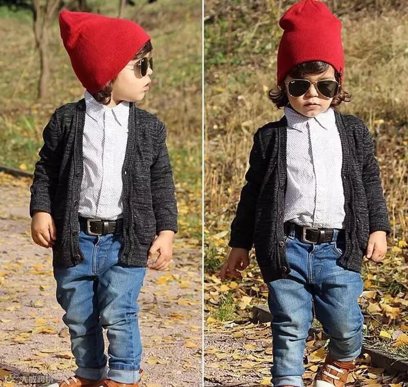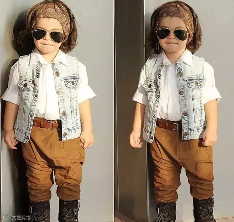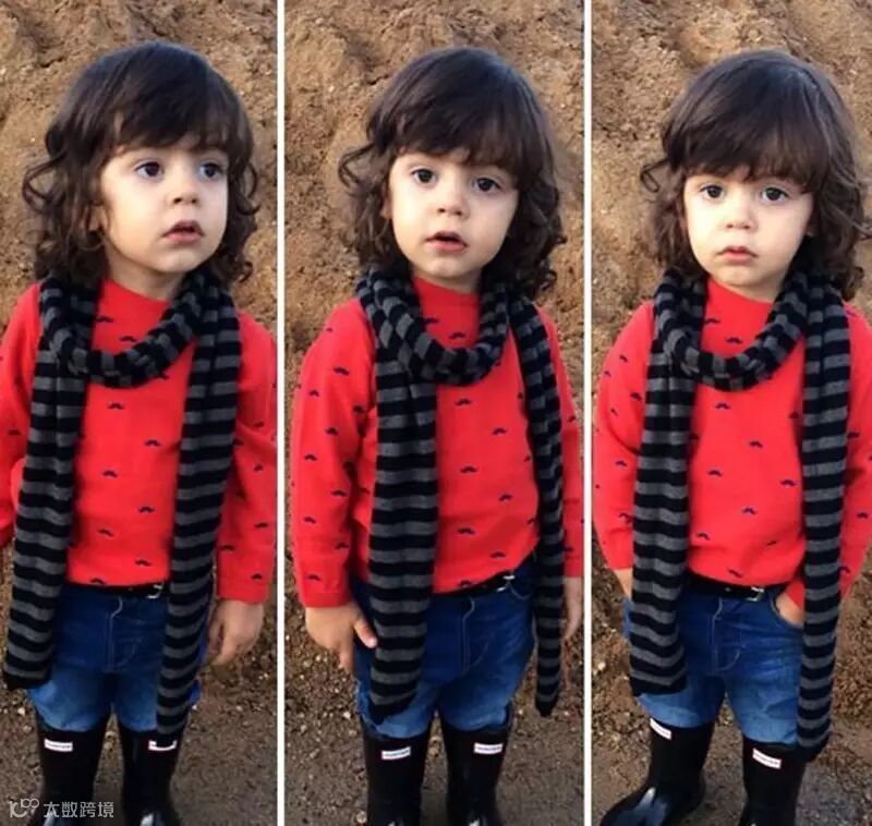 在他2岁的时候,他爸妈就励志把他打造成潮男↓