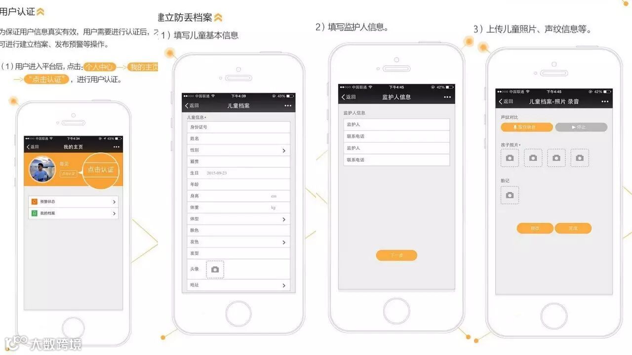 第二步:建立档案,总共分四步,上传孩子信息和监护人信息
