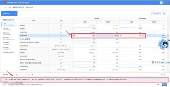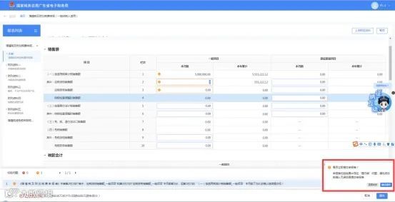 (3)若纳税人在填表过程中出现错误或者违反表单内部勾稽关系的情况时,系统将在纳税人点击提交按钮时进行提醒。