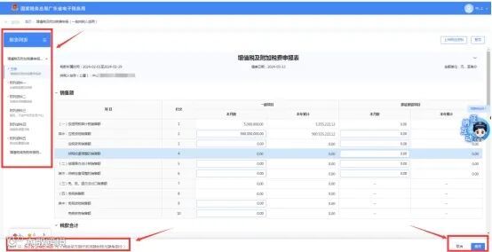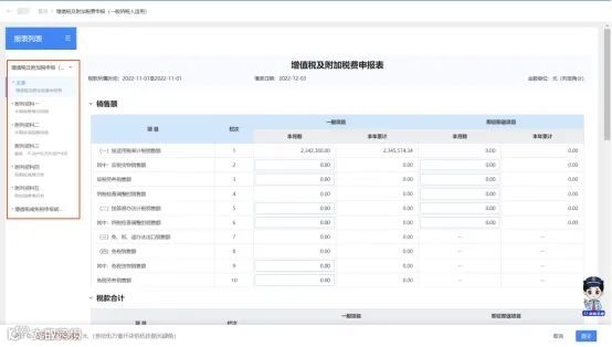(5)进入填表模式后,按照一般纳税人申报表填表规则,先对相关附表进行填写,附表填写完成后回到主表核实相关栏次数据是否正确,特别是本期需要缴纳的税费数据将显示在页面的左下角。