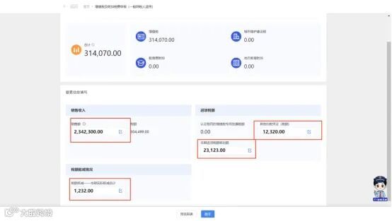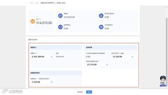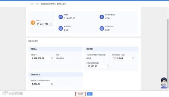 (1)系统根据开票数据等进行部分数据自动预填,纳税人需要对税款所属期、预填的数据以及税(费)结果进行确认。