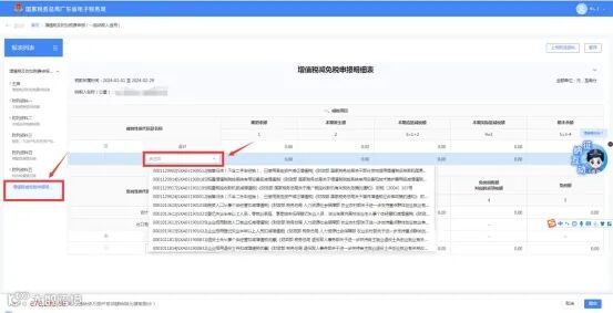 (2)纳税人先填写相应的附表之后再检查主表内容是否正确。若需填写减免信息,则在“增值税减免税申报明细表”附表中选择减免性质代码及名称,并输入对应的减免税额信息(性质代码输入框支持模糊查询)。