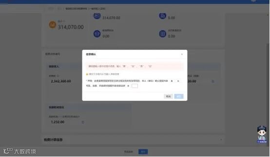 (5)纳税人填写完成,确认数据无误后,点击“提交”,需要纳税人对本次申报结果进行确认声明,纳税人按提示补全声明信息后,点击【确认】即可提交申报。