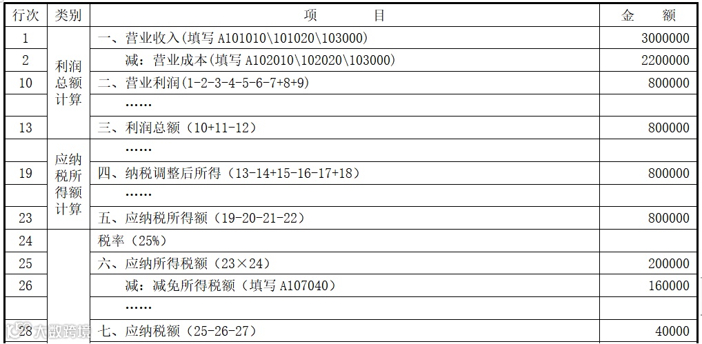 填报《中华人民共和国企业所得税年度纳税申报表(A类)》(A100000):