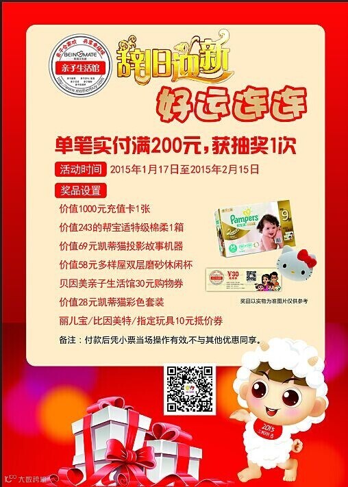 单笔实付满200元,即可获得现场抽奖一次