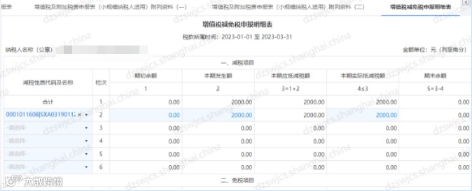 减免税申报明细表如下填写400000×2%=8000元。