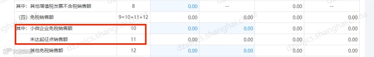 小规模纳税人按月申报销售额不超过10万元或按季申报销售额不超过30万元适用免税政策,个体工商户纳税人填写第11栏,企业纳税人应填写第10栏。