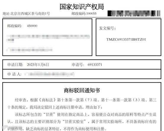 也许会有人说,以前那么多带“甘蔗”的商标名字呢?带“实验室”的也有啊!不好意思,现在不行了!今后带有体现产品功能、原料等特点的名字,会因缺乏显著性,予以驳回。