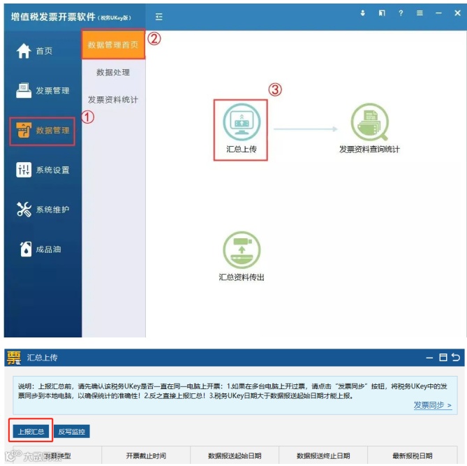 操作流程:点击【数据管理】-【汇总上传】-【反写监控】