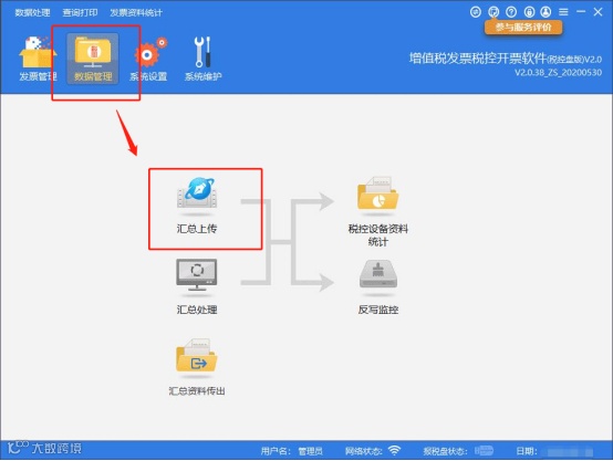 点击:【数据管理】-【汇总上传】-【反写监控】。