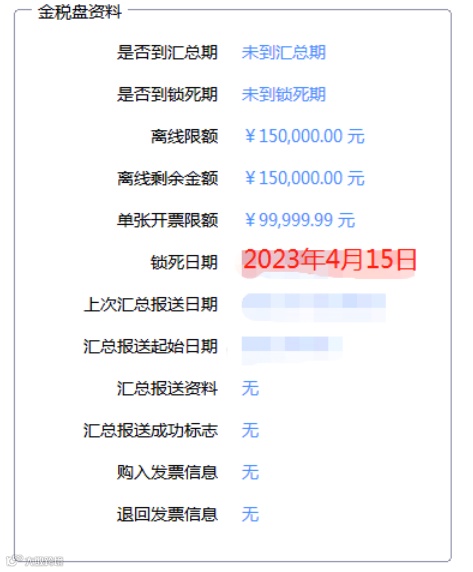 如果锁死日期变为2023年04月15日左右,汇总报税资料为“无”证明清卡成功。