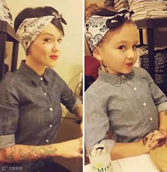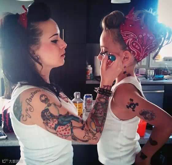 ▼妈妈如果是纹身潮妹子,女儿……至少先把贴纸贴起来了~