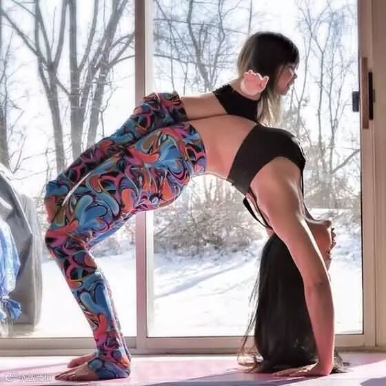 ▼妈妈天天练瑜伽,女儿柔韧性也不会差~