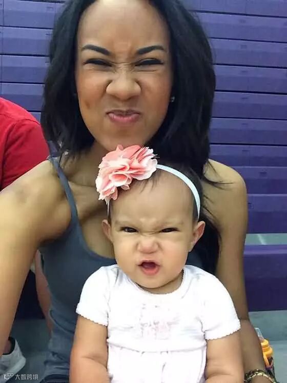 ▼妈妈吐舌头,女儿也跟着一起吐~
