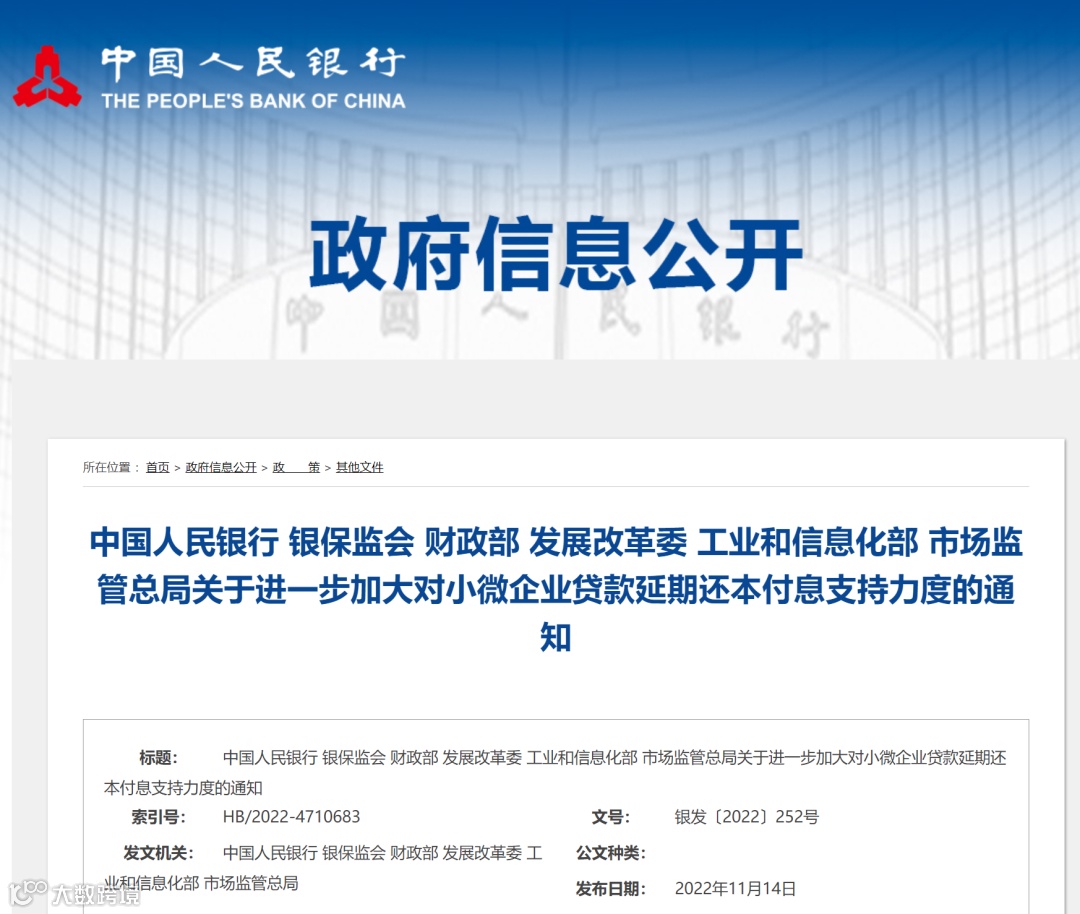 为进一步加大对小微企业等市场主体支持力度,深入落实好稳经济一揽子政策和接续政策,助力稳住经济大盘,近日,人民银行、银保监会、财政部、发展改革委、工业和信息化部、市场监管总局等六部门联合印发《关于进一步加大对小微企业贷款延期还本付息支持力度的通知》(以下简称《通知》),对于2022年第四季度到期的小微企业贷款,鼓励银行业金融机构按市场化原则与企业共同协商延期还本付息。
