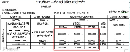 某省总机构A总公司,分别设有B分公司、C分公司,同时设有具有主体生产经营职能且经营收入、职工工资和资产总额独立核算的职能部门,总、分机构企业所得税适用税率均为25%。