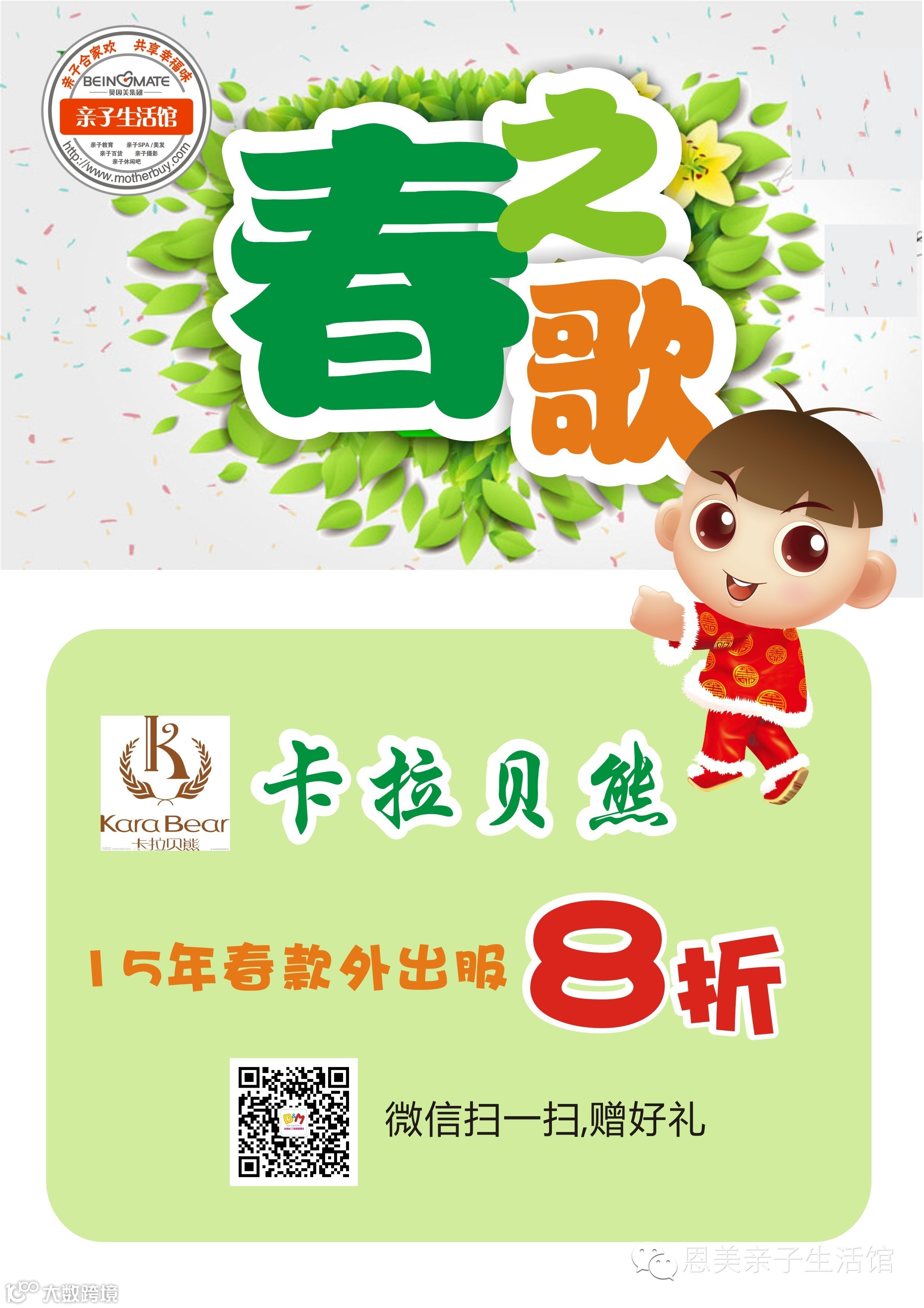 春天来了,天气逐渐的暖和起来了,我们可以带着孩子去郊游,呼吸新鲜空气,接受阳光的沐浴,让孩子感受一下大自然的魅力。去郊游许多爸爸妈妈就怕宝宝冻着,所以一出门就给宝宝穿得很多,宝宝一旦活动便会出汗,衣服被汗液湿透,反而由此着凉,并且也降低了身体对外界气温变化的适应能力而使抗病能力下降。建议给宝宝选择透气性好的、纯棉质地的衣服,颜色尽量浅一些,款式要宽松,便于透风,同时穿一个外套,方便穿脱,如果条件允许,可以多准备一套衣服便于更换。贝因美亲子生活馆陪伴宝宝感受暖春的美好。。。。。。