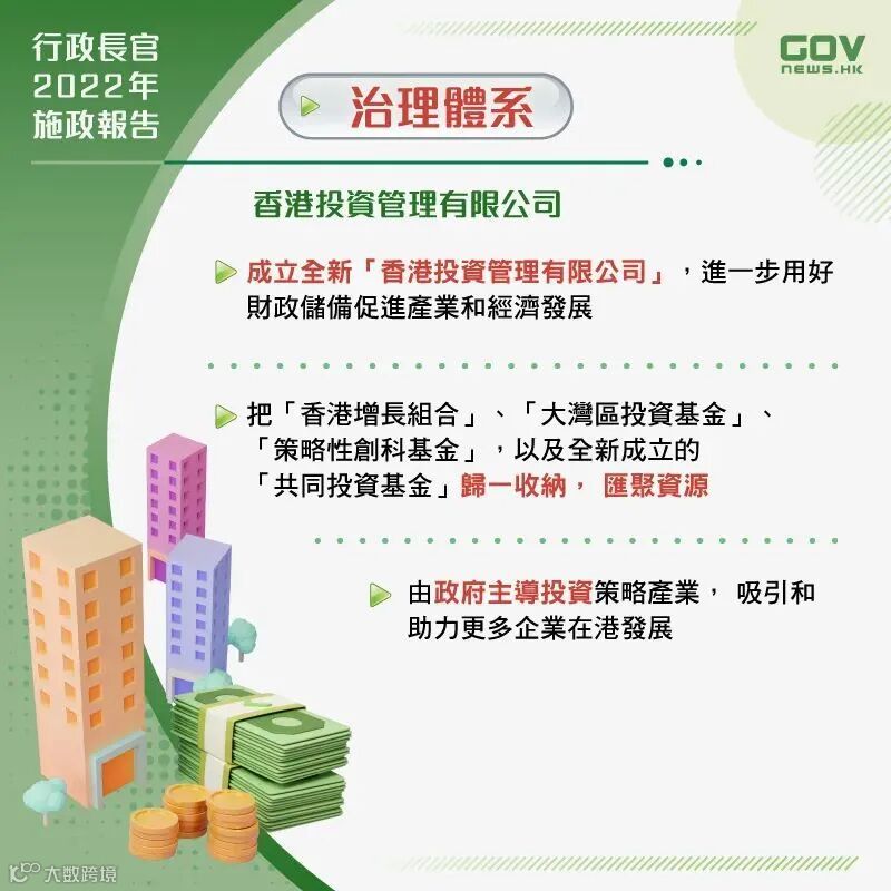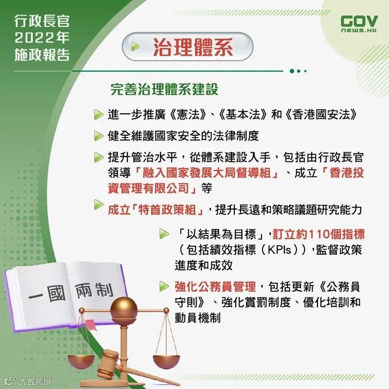 🌟提升管治水平,从体系建设入手,包括由行政长官领导「融入国家发展大局督导组」和「北部都会区督导委员会」,以及成立「香港投资管理有限公司」等