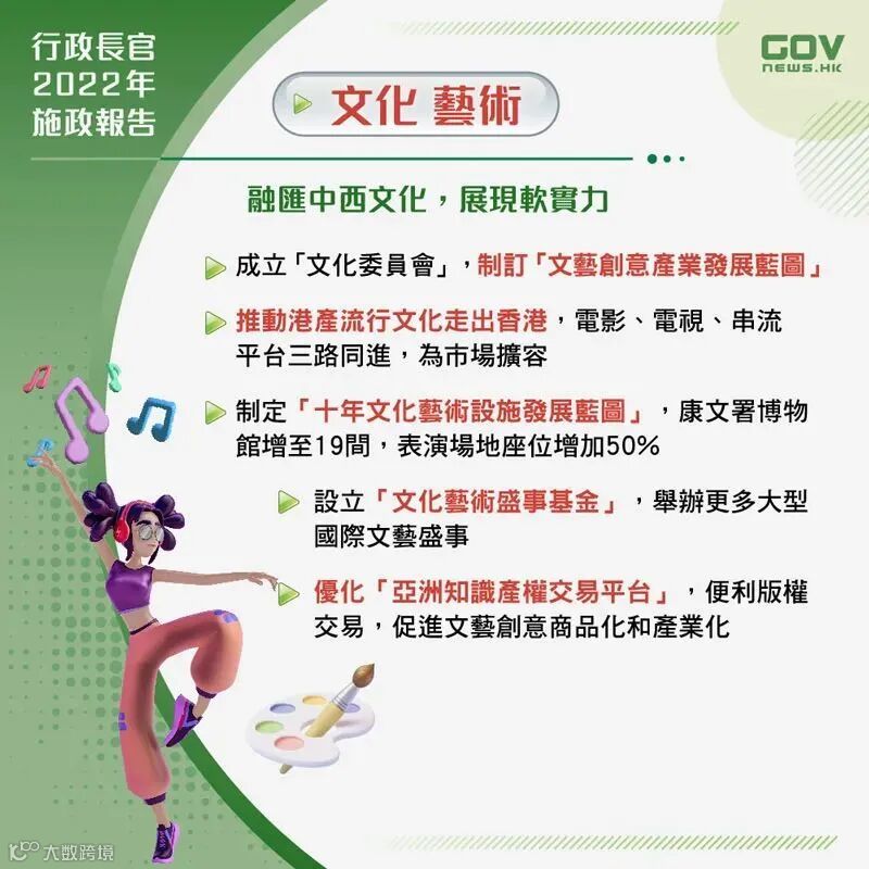 ➖ 设立「文化艺术盛事基金」,支持国际大型文艺活动落户香港