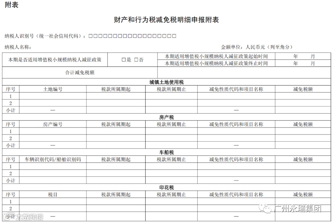 财产和行为税减免税申报附表