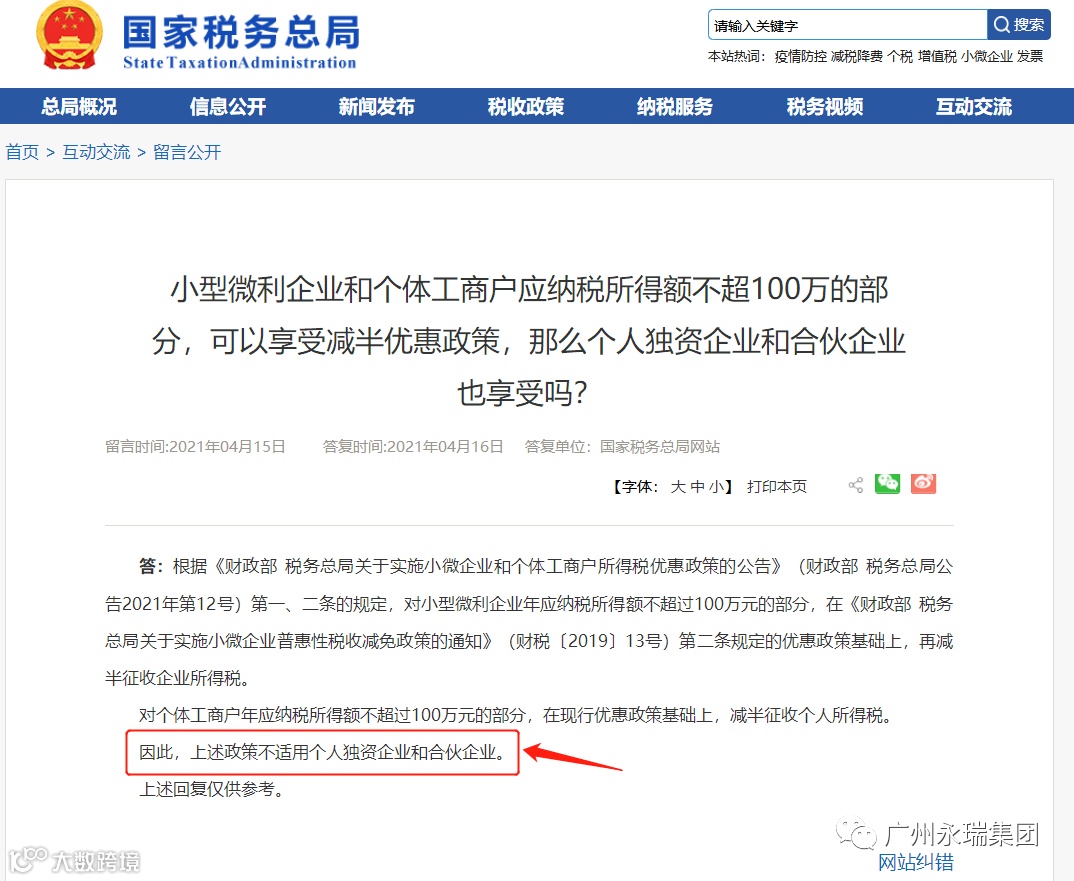国家税务总局明确:个独和合伙企业不能享受个税减半政策
