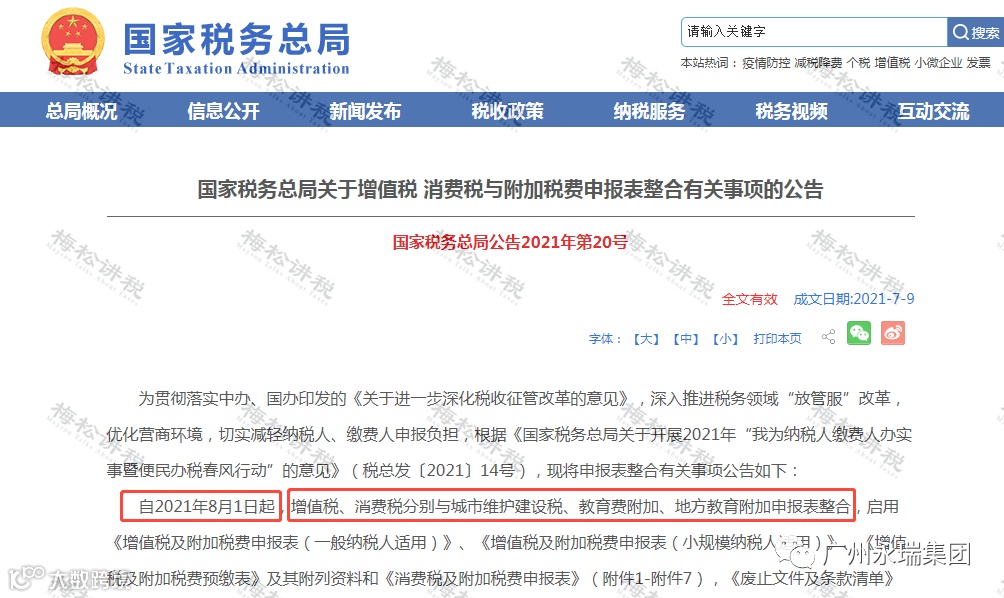 近日,国家税务总局发布关于增值税、消费税与附加税费申报表整合有关事项的公告。
