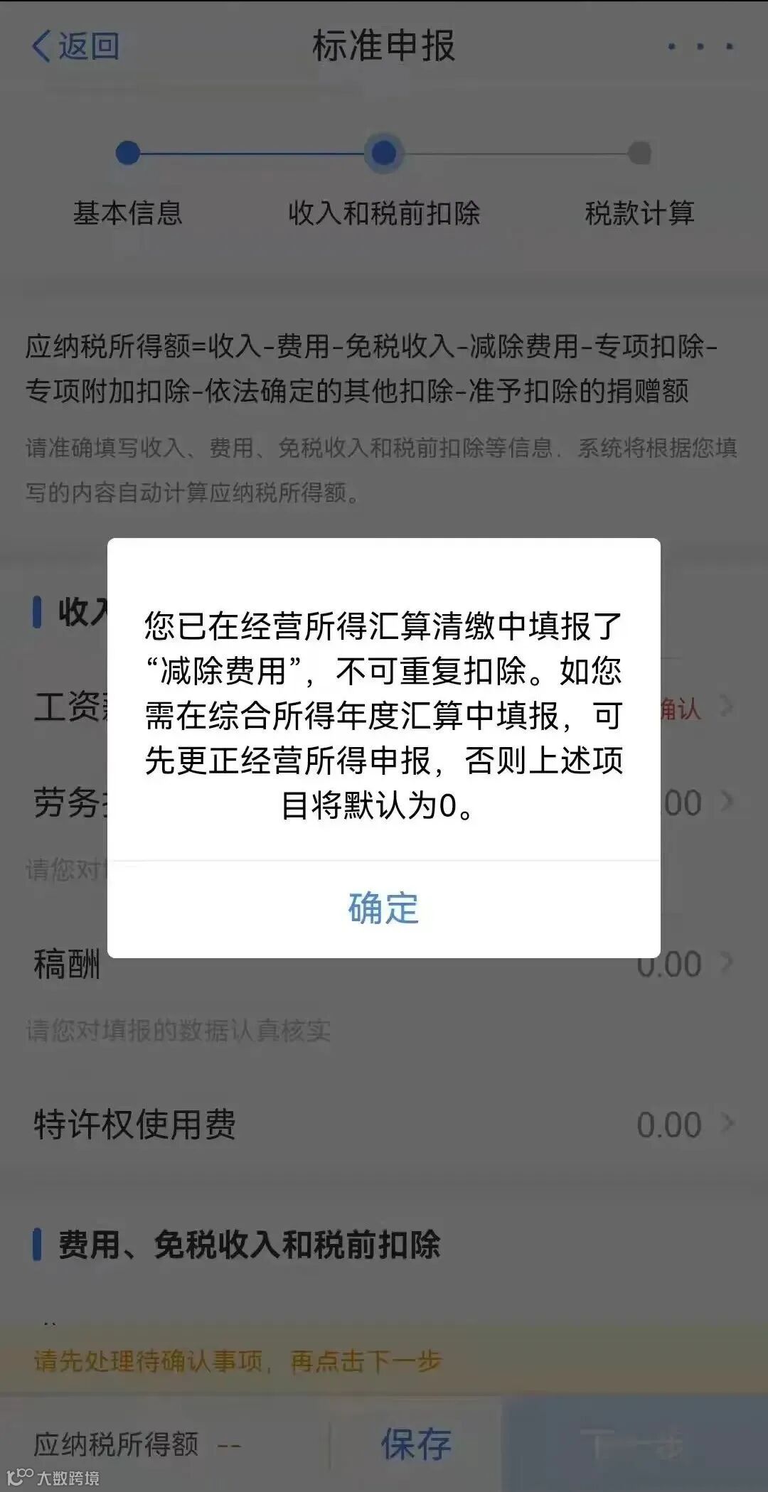 因此,如果您选择在综合所得中扣除6万元减除费用等扣除项的,则需要对经营所得进行更正,减除费用等扣除项更正为0后,再进行综合所得年度汇算申报。