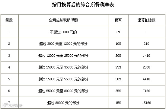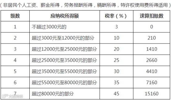 2.非居民个人取得工资、薪金所得;劳务报酬所得;稿酬所得和特许权使用费所得,依照本表按月换算后计算应纳税额。