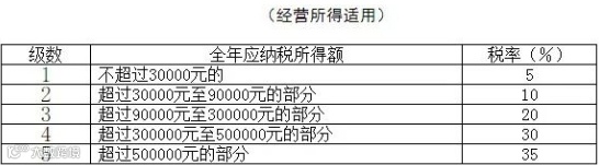 经营所得适用百分之五至百分之三十五的超额累进税率。