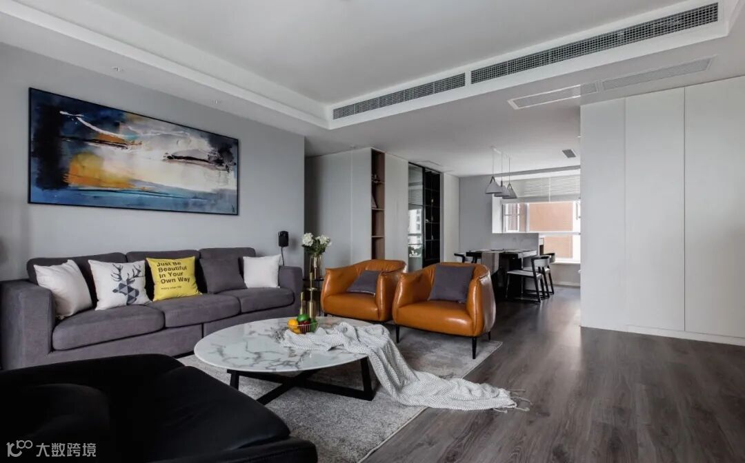 先来看看客厅的装修效果,Salenma萨拉玛灰色艺术涂料背景墙加艺术挂画点缀,再搭配舒适的质感灰沙发,简洁时尚又不失大气的设计效果令人感觉特别高级。长方形的电视柜,有质感的外观,让空间极具现代风格的时尚感,深受许多年轻人的喜好。