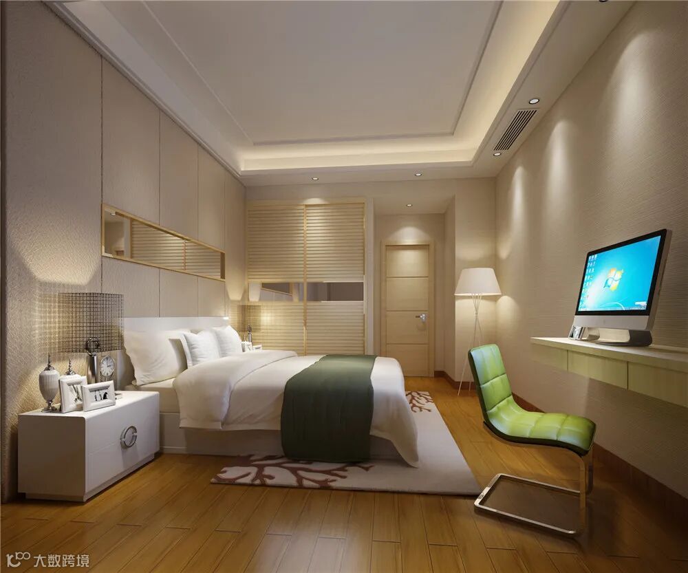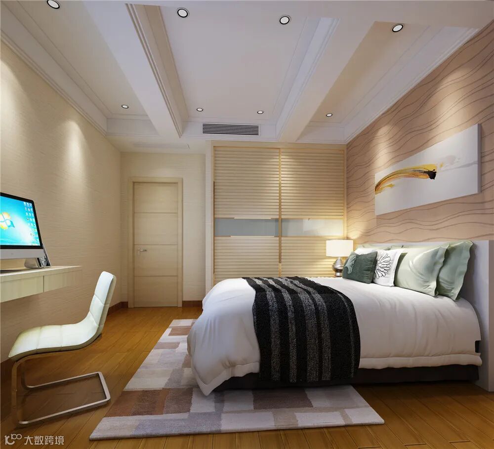 主人房是刻画的重点,背景线条的秩序感与Salenma萨拉玛艺术涂料的时尚感,带来全新的视觉体验,像一曲悦耳的旋律,演绎空间的品质与格调。卧室里摆放这款床非常节省空间,床身体量压缩到极致,释放出更多空间,定制电脑桌以及衣柜是小户型卧室的福音,墙面的艺术设计表现得淋漓尽致,充分扩容,增加卧室的艺术气息。