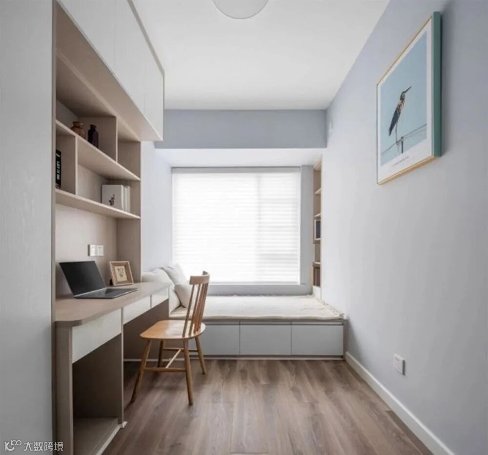 如果有一间空余房间,不妨设计成客房兼书房的形式,平时可以在里面学习、工作,累了还有区域用来休憩,颇有“偷得浮生半日闲”的韵味。