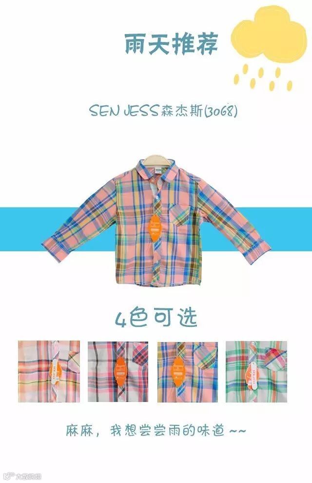清凉配色+趣味图案,宝贝们再也不是“图样too simple”!下雨就加上一件柔软轻薄便衣,换上时髦七分裤,稳稳hold住善变天气!