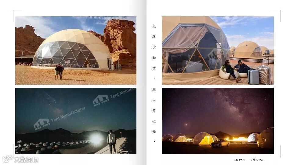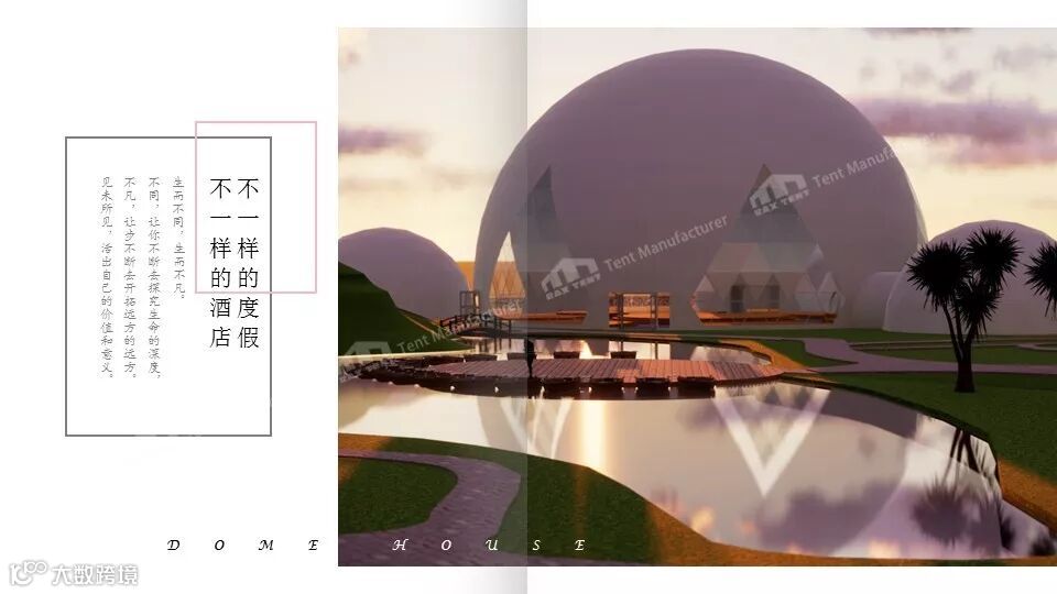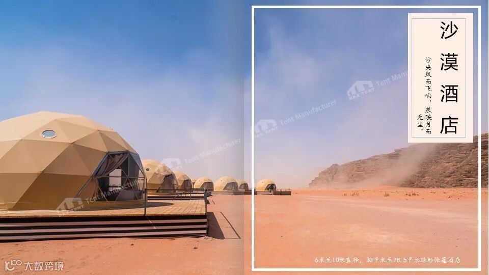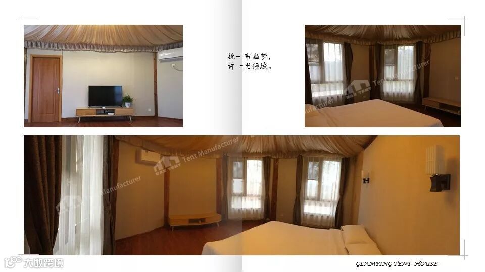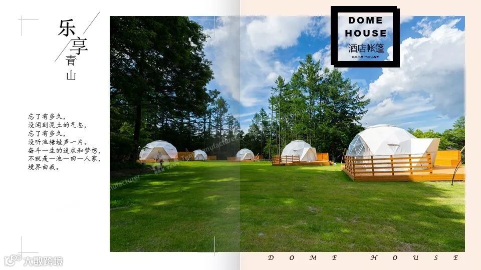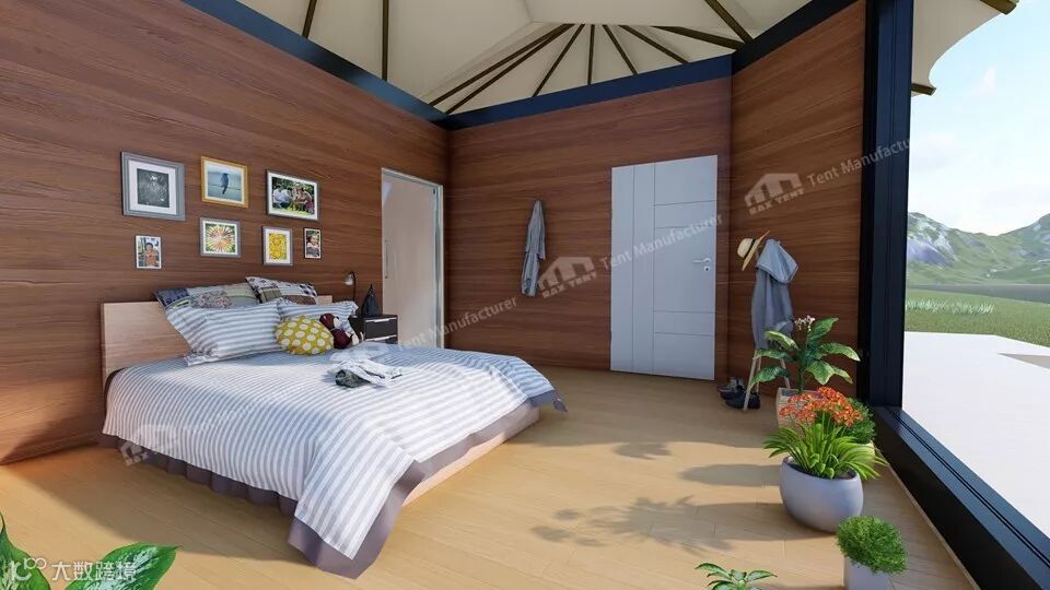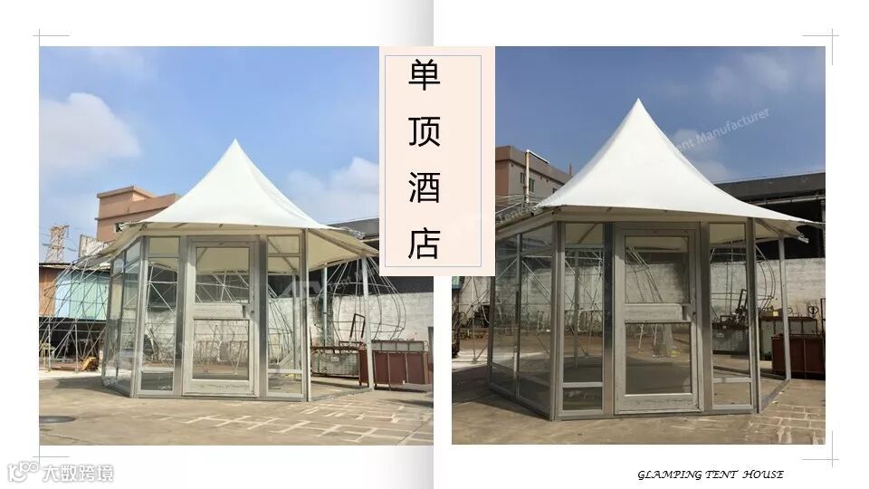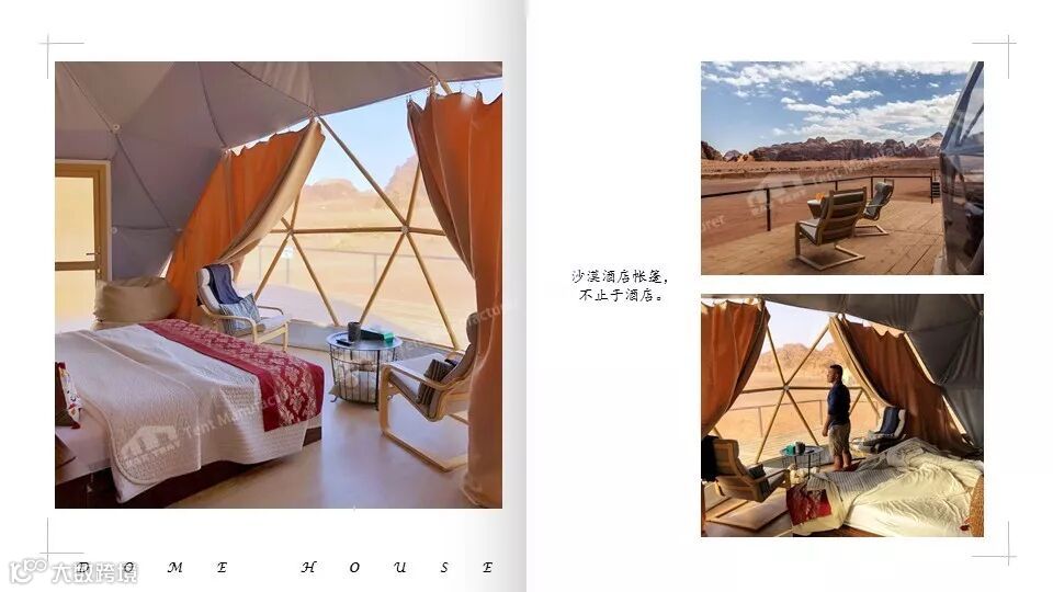 酒店帐篷在国内外市场使用都非常普遍,常适用于旅游景区、风景区、高尔夫球场,赛事场地等,主要承担了酒店住宿的功能。因此,考虑到入住人群的区域特征及兴趣爱好特征及周边自然环境的条件,在进行酒店帐篷设计时没有完全统一的标准,而是根据终端客户的差异性而不同。