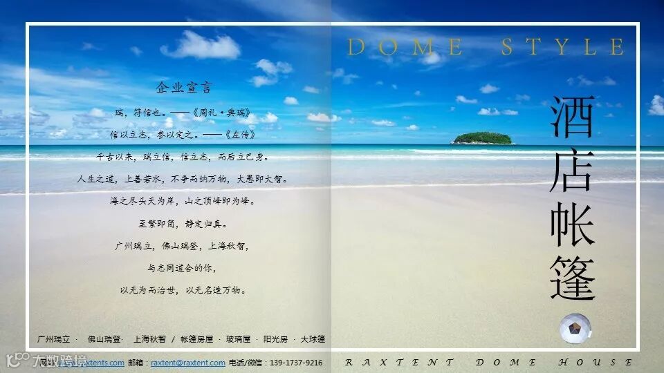 在研发新产品及探索帐篷行业新思路方面,广州市瑞立帐篷一直走在行业前沿。以瑞立曾经服务过的客户为例,在满足入住客户基本生活需求时,帐篷内增设了床、桌椅、沙发、卫洗浴、照明、空调、热水器、WiFi等,除此之外,因为入住客户有鲜明的特性,注重居住体验及情调,热爱生活,崇尚自主、自由、健康的生活方式,因此在酒店帐篷的软装设计,也对客群生活居住方式进行展现。