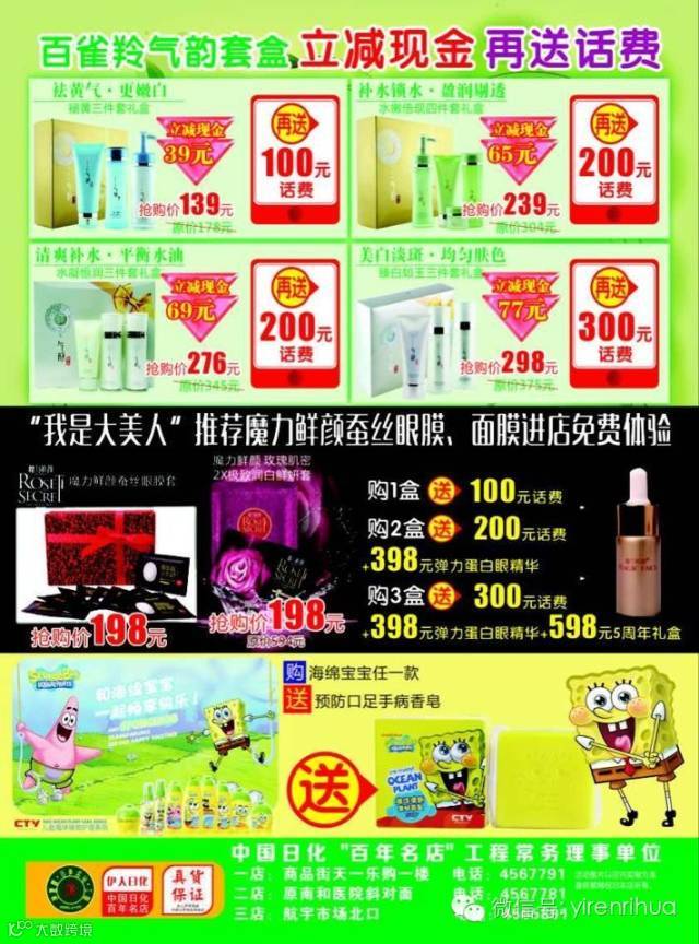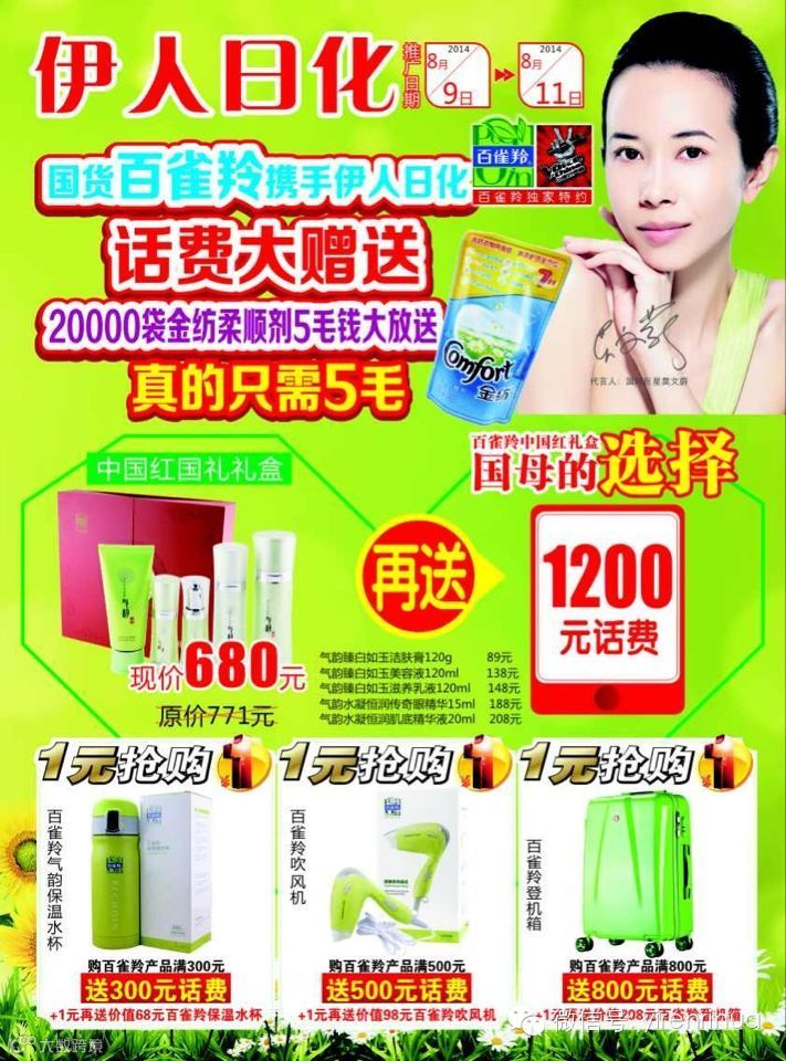 国货百雀羚携手伊人日化话费大赠送!