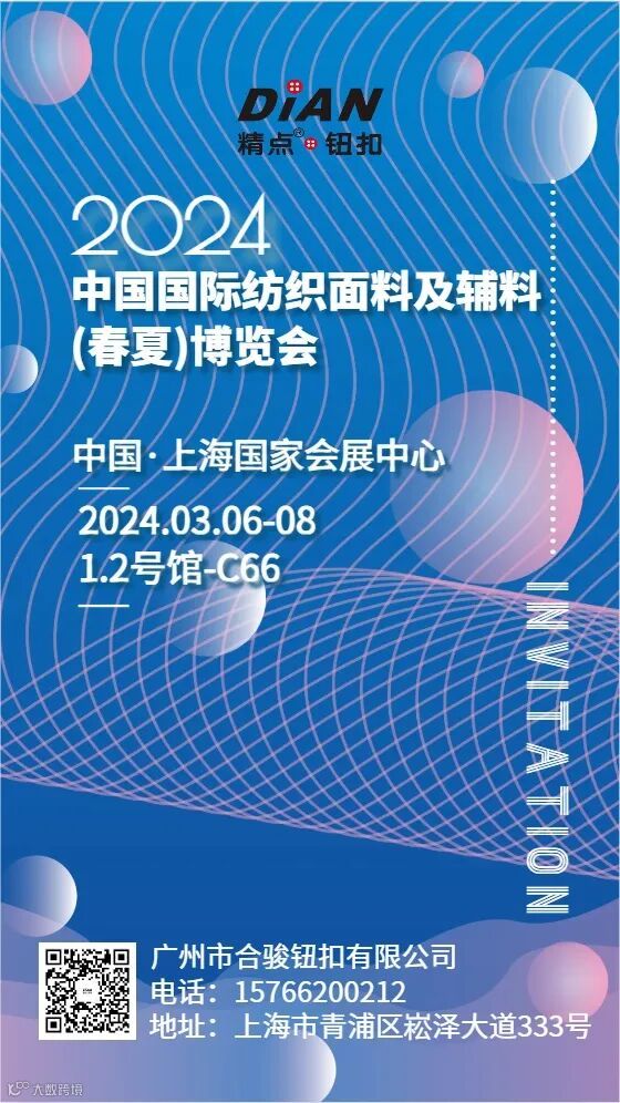导读:2024年3月6日-8日,2024中国国际纺织面料及辅料(春夏)博览会将在上海国际会展中心盛大举行,精点钮扣参展,期待您的到来!