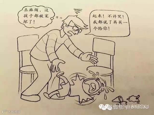 孩子——非常不能接受爸爸严肃的语调和愤怒的言语,觉得很委屈,哭更大声了