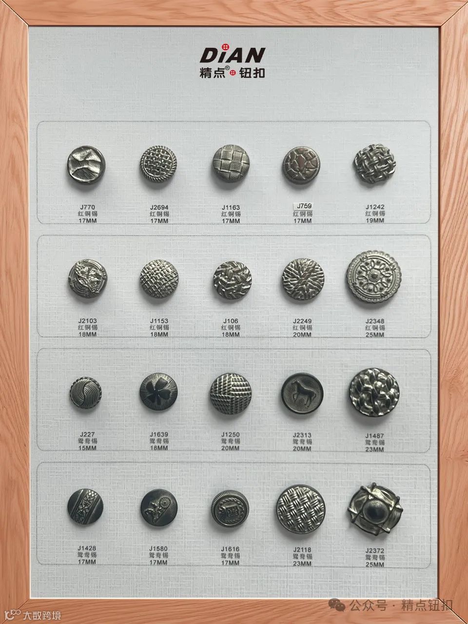 精点纽扣™一直秉承着对品质的追求和对设计的热爱,每一颗纽扣都经过精心设计和制作。我们相信,细节决定品质,品质成就品牌。选择精点纽扣,选择与自然和谐共生的美好生活。