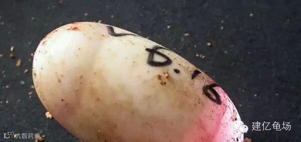 龟的受精斑应该是横向有清晰边缘的白斑,从中间开始成环状后向两端蔓延。