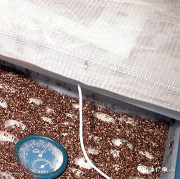 用蛭石做孵化材料,泡湿透后挤干水,塑料盒里装上蛭石后就可以放龟蛋了,排好蛋后上面再盖上0.5-25px的蛭石,盖好盒盖,放入孵化箱(加热垫和塑料盒之间放置50px的木条架空,使塑料盒受热均匀)。