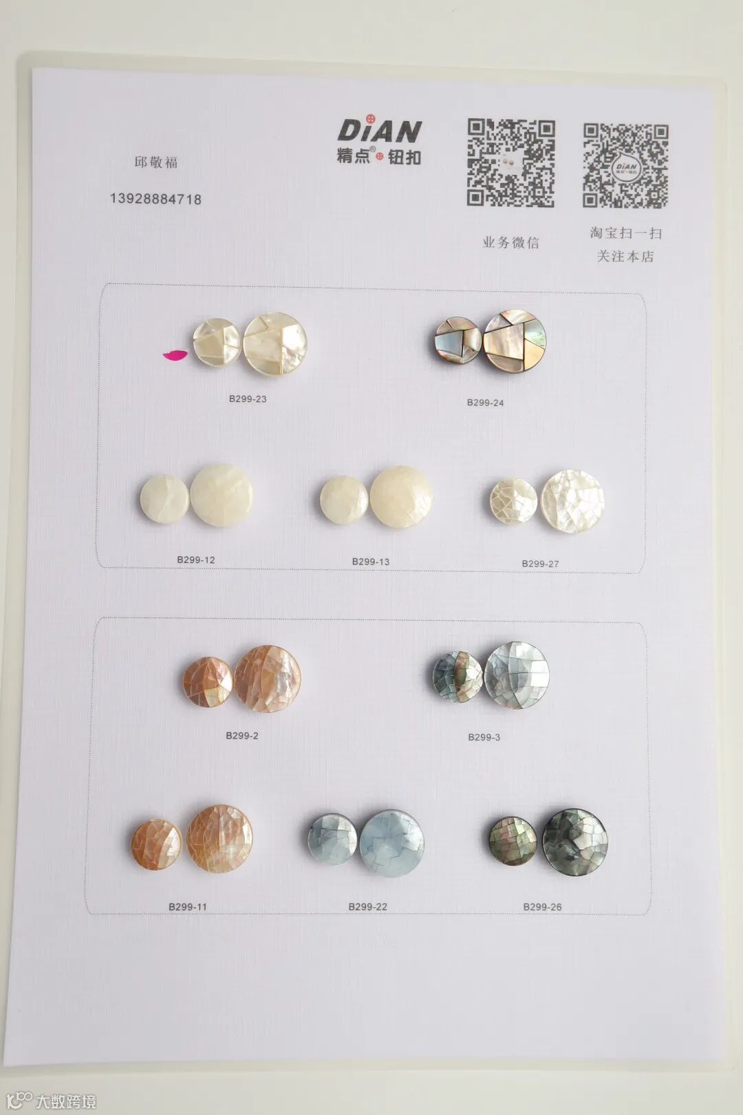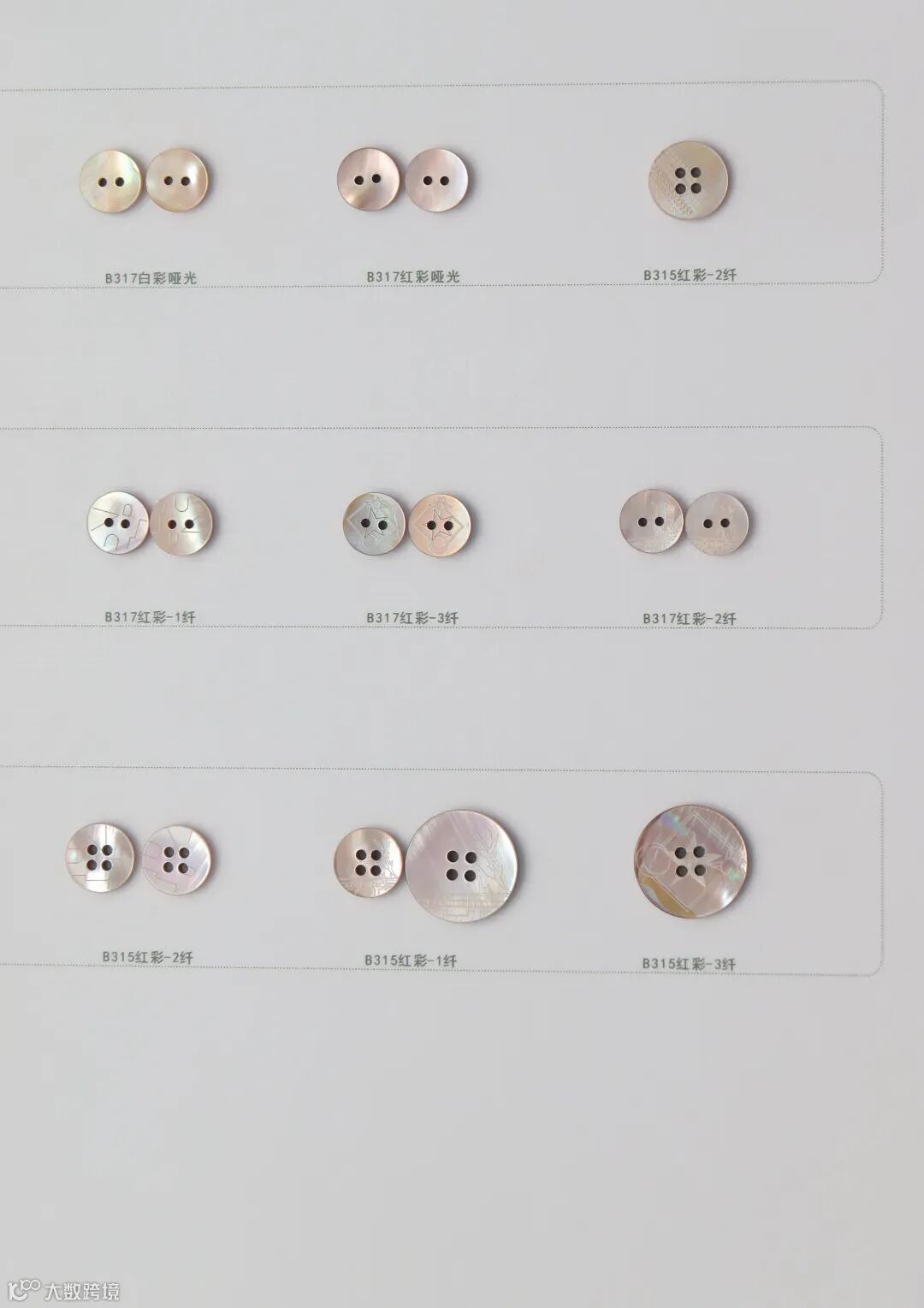 导读:贝壳纽扣的质感高雅,光色亮泽,一直是高档服饰的最佳搭配辅料之一,贝壳纽扣分成六类;塔螺贝、白蝶贝、黑蝶贝、淡水贝、马氏贝、鲍鱼贝等等。尤其是配上白色系列的礼服会更加漂亮,高级衬衫等贝壳纽扣十分美丽,又