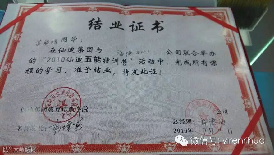 2010年仙迪五能特训营活动中以优异成绩结业。