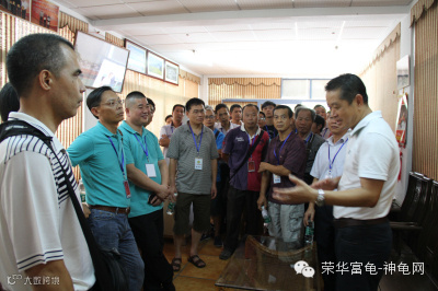 江门市龟鳖养殖协会成立更快地促进了江门市龟鳖养殖业形成产业链和独立的市场监督体系,加强养殖户之间的交流与协作。理事会为了使各位会员更好地熟悉各地区的养龟经验及行业动态,与各地特色养殖场增加交流机会,于6月8日组织全体会员合共150多人参观了陈村金顺龟鳖合作社、花之星名龟交流中心、均安威霖龟鳖养殖场。