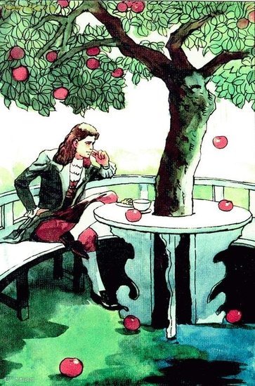 关于牛顿和他的苹果是伏尔泰编的,据说他是听牛顿的侄女说的,当然牛顿的所有手稿里没提到那只苹果。