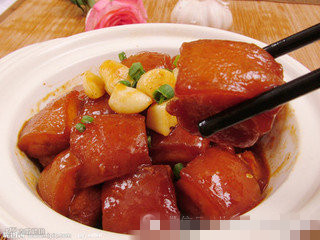 红烧肉出锅前加入乙基麦芽酚,加热后产生有光泽的铁锈红,并且会增加红烧肉醇厚的香气……至于加热后乙基麦芽酚是否会产生有毒物质,我不了解……反正饭店里红烧肉烧得比我老妈烧得好吃的,我就尽量克制不吃……