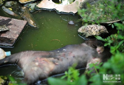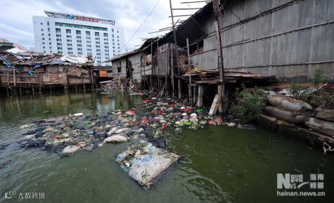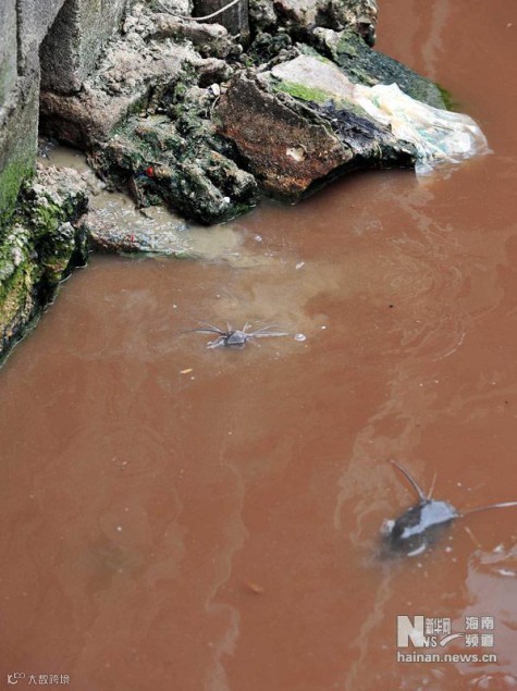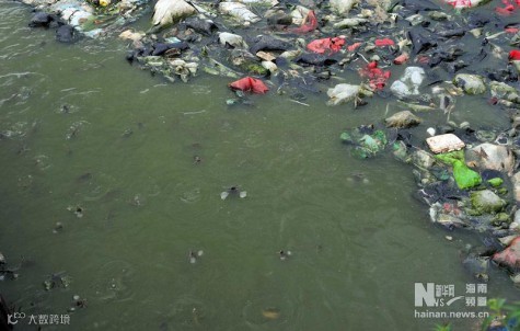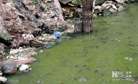 在海南省海口市坡巷路有一条不起眼的小道,内进50米有7口大大小小的鱼塘。鱼塘周围被鸡圈和猪圈环绕,塘中漂浮着大量垃圾,恶臭扑鼻。密密麻麻的鲶鱼在水中游动。这些鱼塘已经存在了十余年,猪粪、鸡粪和周围养殖户厕所排出的粪便都排进鱼塘。