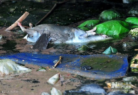 一条鲶鱼在啃食老鼠的尸体!↓↓↓